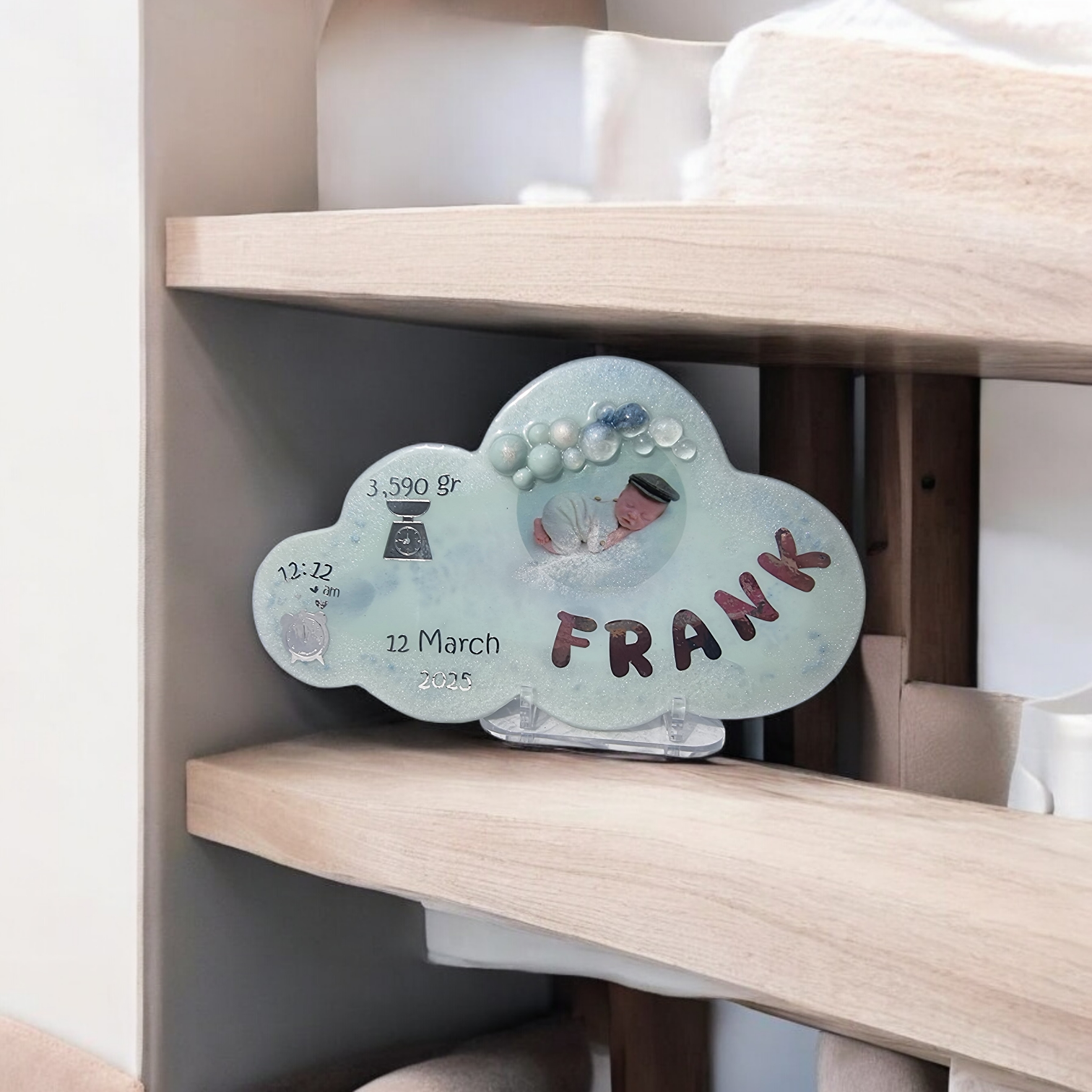 Personalised Baby Keepsake Cloud Shape | Newborn Birth Details Resin Plaque