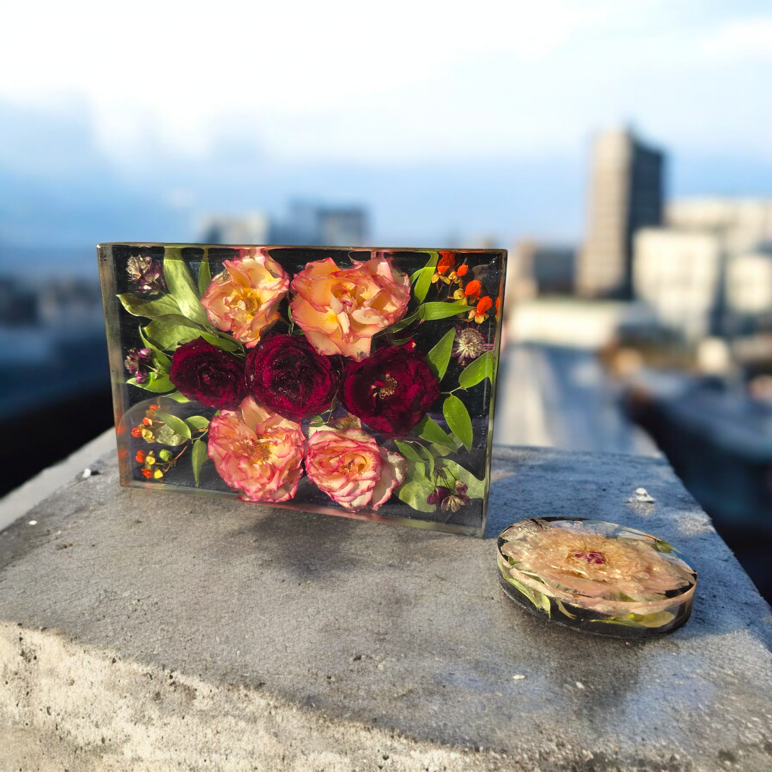 Square Resin Flower Block 15x15x4 cm | Single Flower or Small Composition | Different depths available £110.00 £0.00
