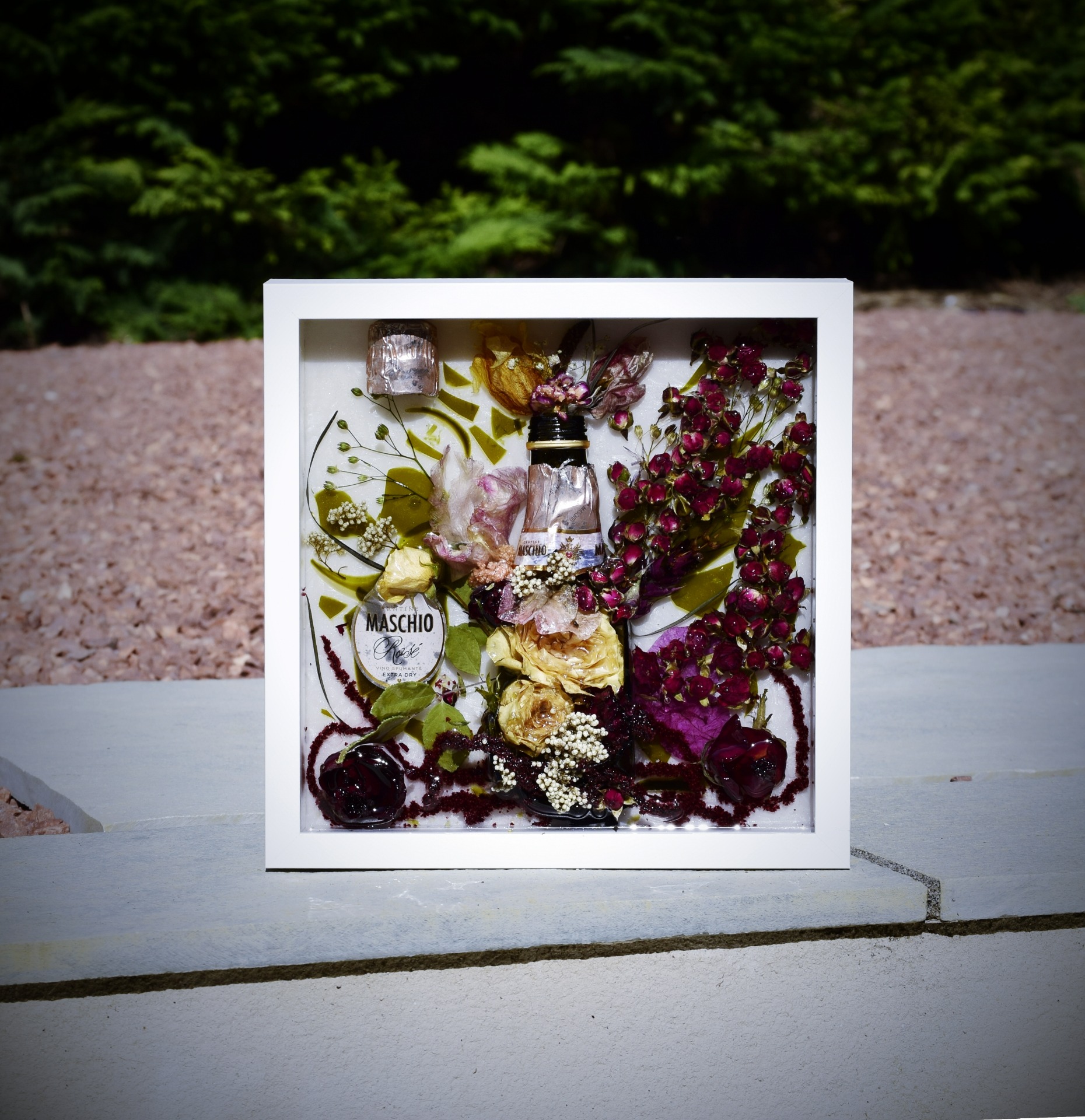 Broken Bottle Floral Resin Art – Wedding Flowers Keepsake Frame | 25x25 cm | White or Black frame colour choice £225.00 £0.00