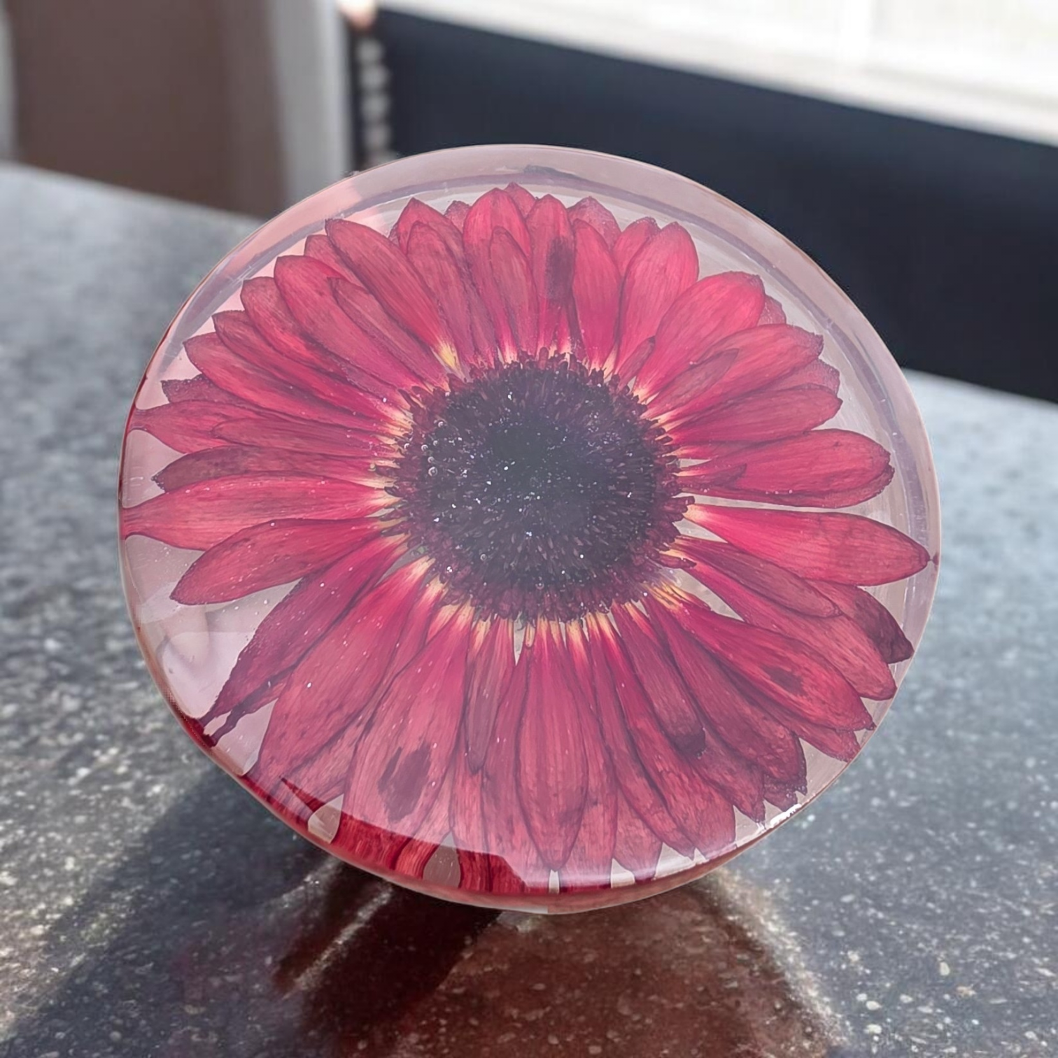 Resin Round Mini-Coasters 9x9 cm with Crystal Edge & Preserved Flowers