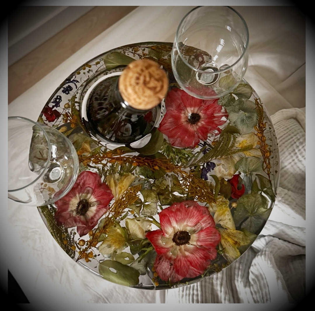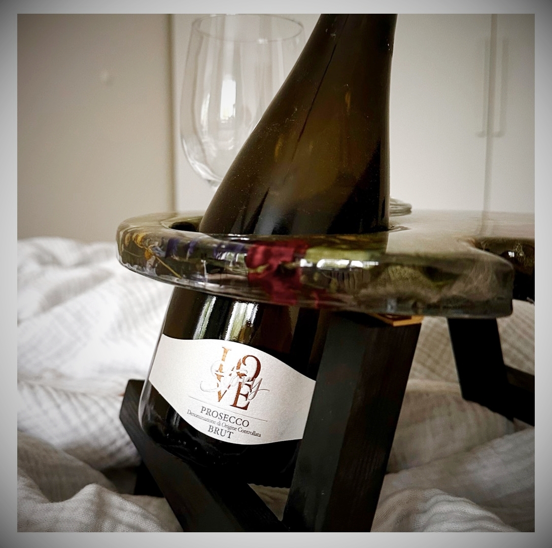 Wine Table with short legs and space for a bottle and 2 glasses